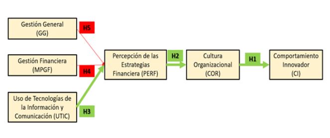 De las cuatro hipótesis planteadas, tres fueron aceptadas y una rechazada. Los resultados indican que la Cultura Organizacional (COR), la Percepción de Estrategias Financieras (PERF) y el Uso de TIC (UTIC) influyen de forma positiva y significativa en el Comportamiento Innovador (CI), validando el modelo conceptual y aportando evidencia empírica sobre el impacto de las TIC en la competitividad del sector vitivinícola.