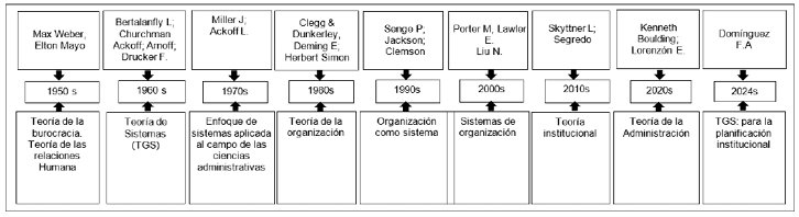 El estudio de la TGS en la administración ha cobrado relevancia en las últimas décadas debido a su capacidad para abordar la complejidad de las instituciones. Esta perspectiva permite analizar las organizaciones como sistemas integrados, compuestos por múltiples elementos interdependientes, cuyas interacciones determinan el desempeño institucional (Tushman & O’Reilly, 1996; Kunc & Morecroft, 2008; Marshall & Farahbakhsh, 2013; Arnold & Wade, 2015; Fahimnia et al., 2015; Peitz & Schuett, 2016; Boyd & Solarino, 2016; Ben-Daya et al., 2017; Ling et al., 2020).