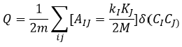 = 1 si los nodos i y j pertenecen al mismo clúster, 0 en caso contrario.