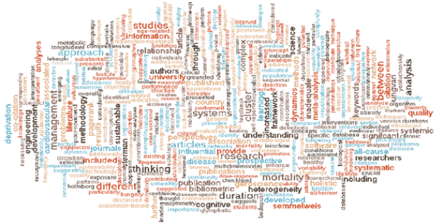 La nube de palabras generada con MAXQDA 24 evidencia la concentración léxica del corpus en conceptos asociados a la TGS y su aplicación a la gestión institucional. La alta frecuencia de términos como “sistemas, dynamics y framework” refleja un énfasis en enfoques analíticos basados en la interdependencia, la dinámica organizacional y la construcción de marcos conceptuales integradores (Grafico 1).