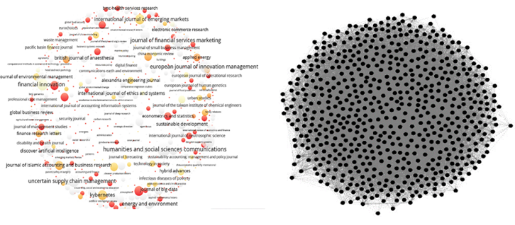 A continuación, se presentan los resultados del análisis de redes realizado con el software VOSviewer, en el cual se identifican las editoriales que destacan por su elevado volumen de publicaciones y un promedio significativo de citas por artículo, entre ellas Elsevier, Taylor & Francis y John Wiley & Sons. Estos resultados evidencian su mayor influencia y visibilidad en la producción científica sobre pensamiento sistémico, sus efectos de red y las arquitecturas digitales escalables aplicadas a la empresa multinacional para incorporar dimensiones digitales y lógicas sistémicas (Tabla 1).