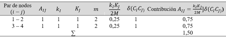 kIKJ= grado (número de enlaces) de los nodos i y j.
