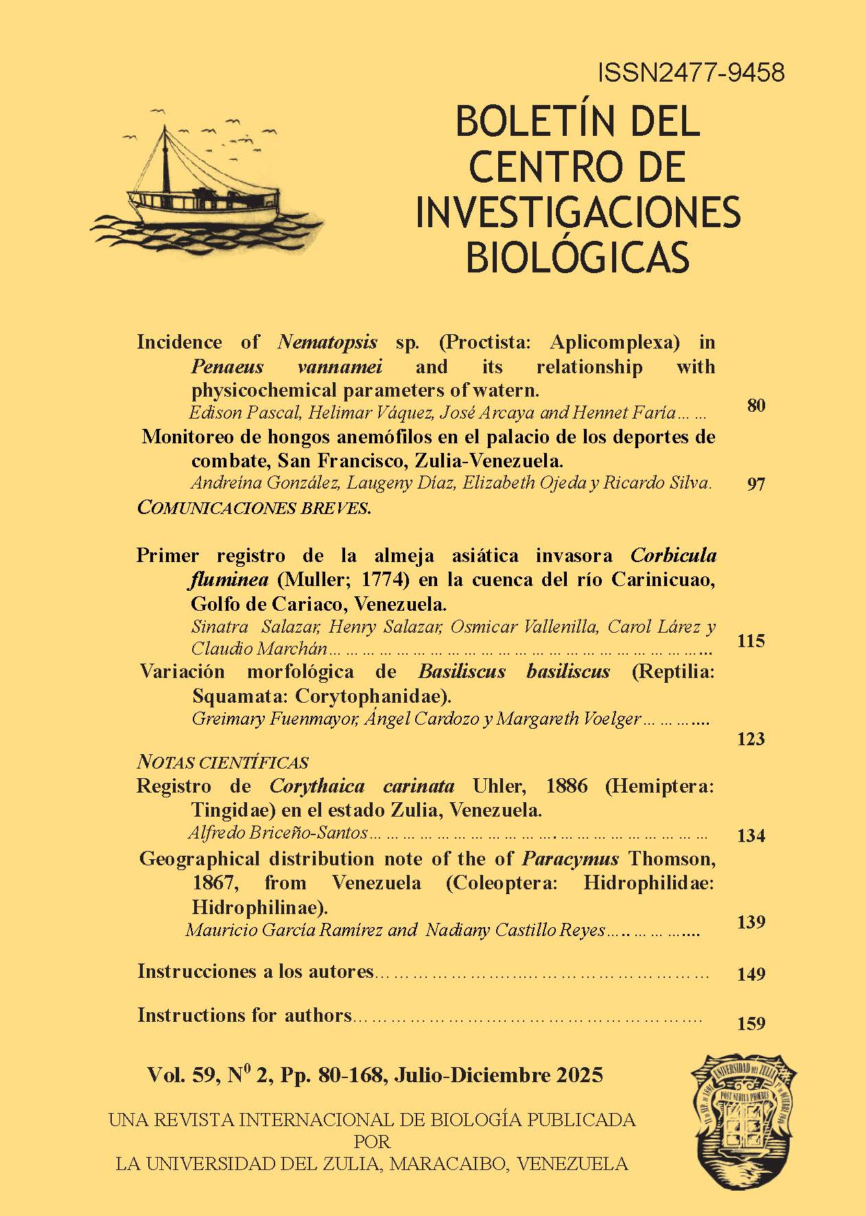 Vol. 59 Núm. 1 (2025): Boletín del Centro de Investigaciones Biológicas. Enero-Junio 2025