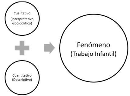 Para alcanzar el objetivo, se tornó necesario sustentar este trabajo en los paradigmas interpretativo y sociocrítico, lo cual no solamente permiten comprender y crear un constructo respecto a este fenómeno, sino también ofrecer un análisis crítico, con un respaldo teórico. Asimismo, se hizo uso de la estadística descriptiva para establecer la realidad empírica de dicho fenómeno, lo cual requirió utilizar el enfoque cuantitativo y a la vez cualitativo y método deductivo, apoyados en el paradigma positivista. La presente investigación tiene una justificación teórica, puesto que busca conceptualizar el trabajo infantil y ayudar en su comprensión dentro del escenario actual. Se realizó el análisis de los factores asociados identificados, presentados en la parte estadística relevante respecto al caso. En el diagrama 1, se presenta de manera ilustrada el esquema de la metodología seguida.