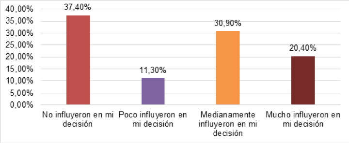 En el gráfico 3 se evidencia que el 40.8% respondió que las redes sociales no influyeron en su voto, el 59.2% reportó que sí influyeron en su voto; se puede observar que los amigos fueron el principal grupo de referencia que influyó en las decisiones de voto (gráfico 3).