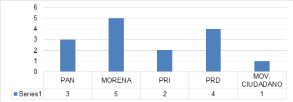 González-Duran et al. (2019) en su instrumento aplicó una pregunta para clasificar de manera negativa (1) o positiva (5) a los partidos de acuerdo con su imagen, teniendo como resultado a Morena en primer lugar, PRD consolidando una buena imagen y al PRI y Movimiento Ciudadano en los últimos lugares.