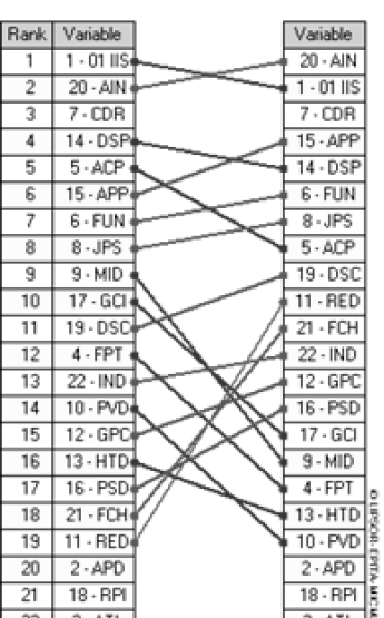 Nota: Las líneas muestran los cambios de posición de cada variable en cuanto a su rango de influencia directa e indirecta.