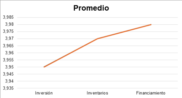 El gráfico 2, muestra la media de los factores insolvencia financiera, sostenibilidad, flujo de fondos y endeudamiento, los cuales están relacionados con la capacidad de las empresas para enfrentar choques macroeconómicos. Se observa una tendencia descendente en los valores promedio, siendo la insolvencia financiera el factor con la media más alta y el endeudamiento el de menor promedio.